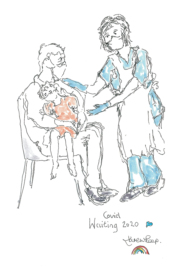 The NHS drawings are very much my own style – they aren’t accurate, they are scribbled and very fast – usually in ink and watercolour because I wanted to capture a moment in time. That part is very instinctive.