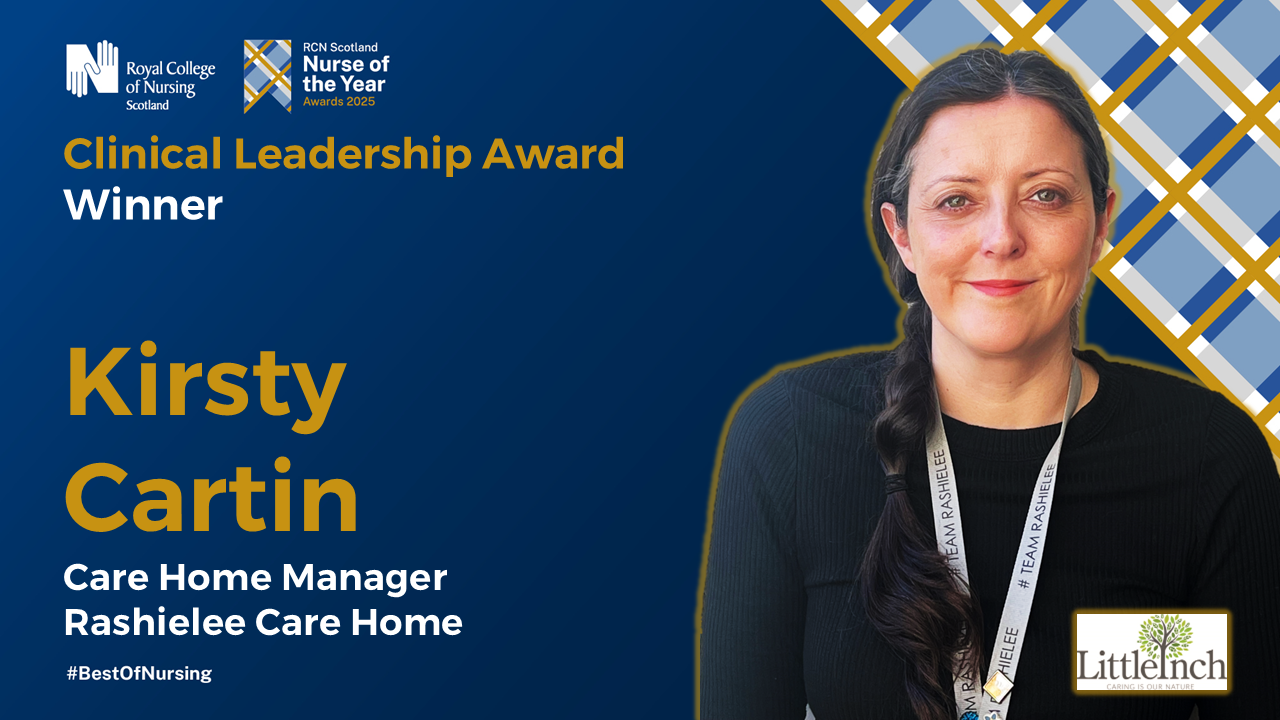 The judges praised Kirsty’s openness to have discussions about, in her words, ‘the good, the bad, and the ugly’ which fosters an environment of supportive conversations. Head Judge, Eileen McKenna, said: “We were particularly impressed that through challenging the stigma often faced by care home nursing, Kirsty demonstrated a clear drive to ensure that her team always feel valued and supported for the excellent nursing staff they are. She doesn’t focus on what went wrong, she drives improvement by working with staff to see how everyone can work differently, mentoring staff to ensure everyone is always learning.”