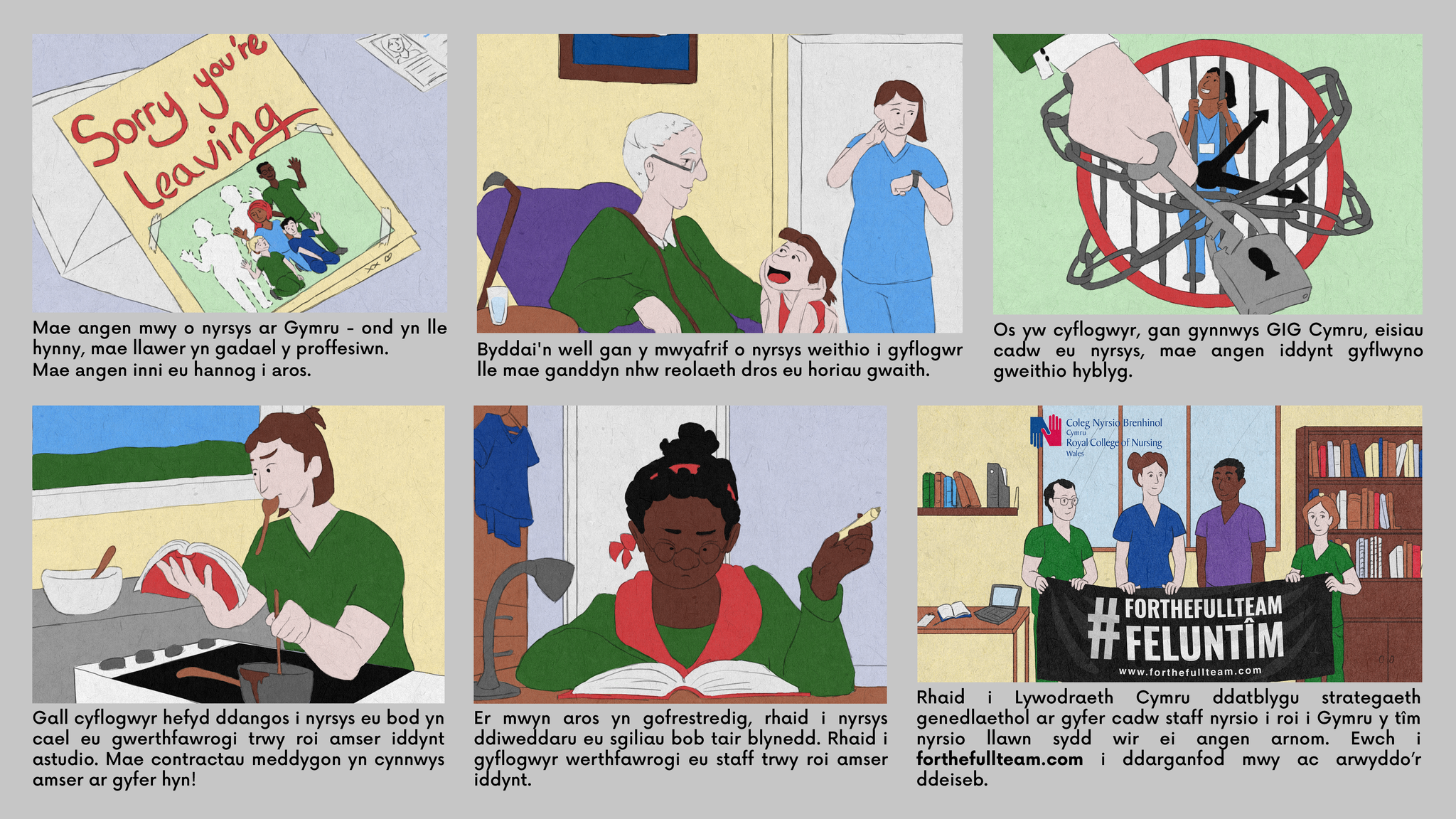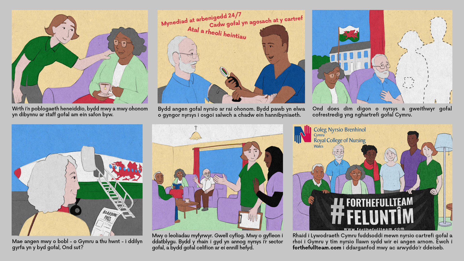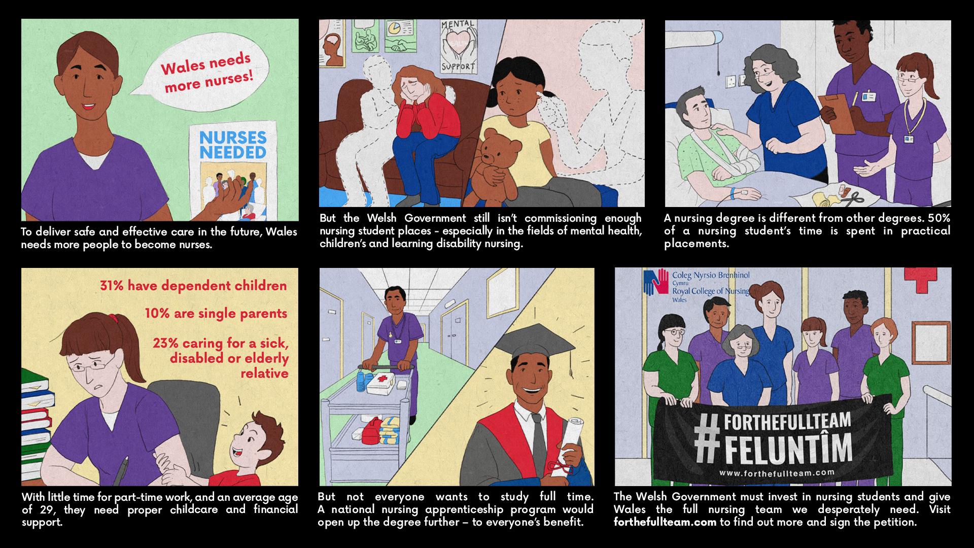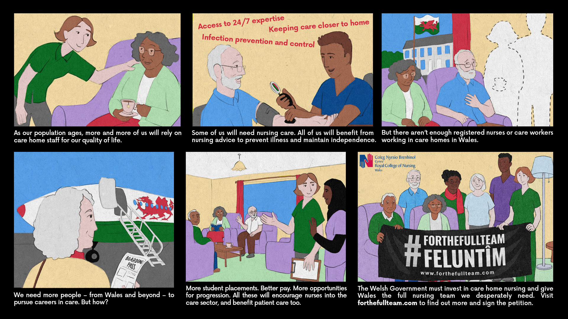 Need a quick visual explainer of the value of nursing education or why the Welsh Government should invest in care home nursing? These comic strips have your back.