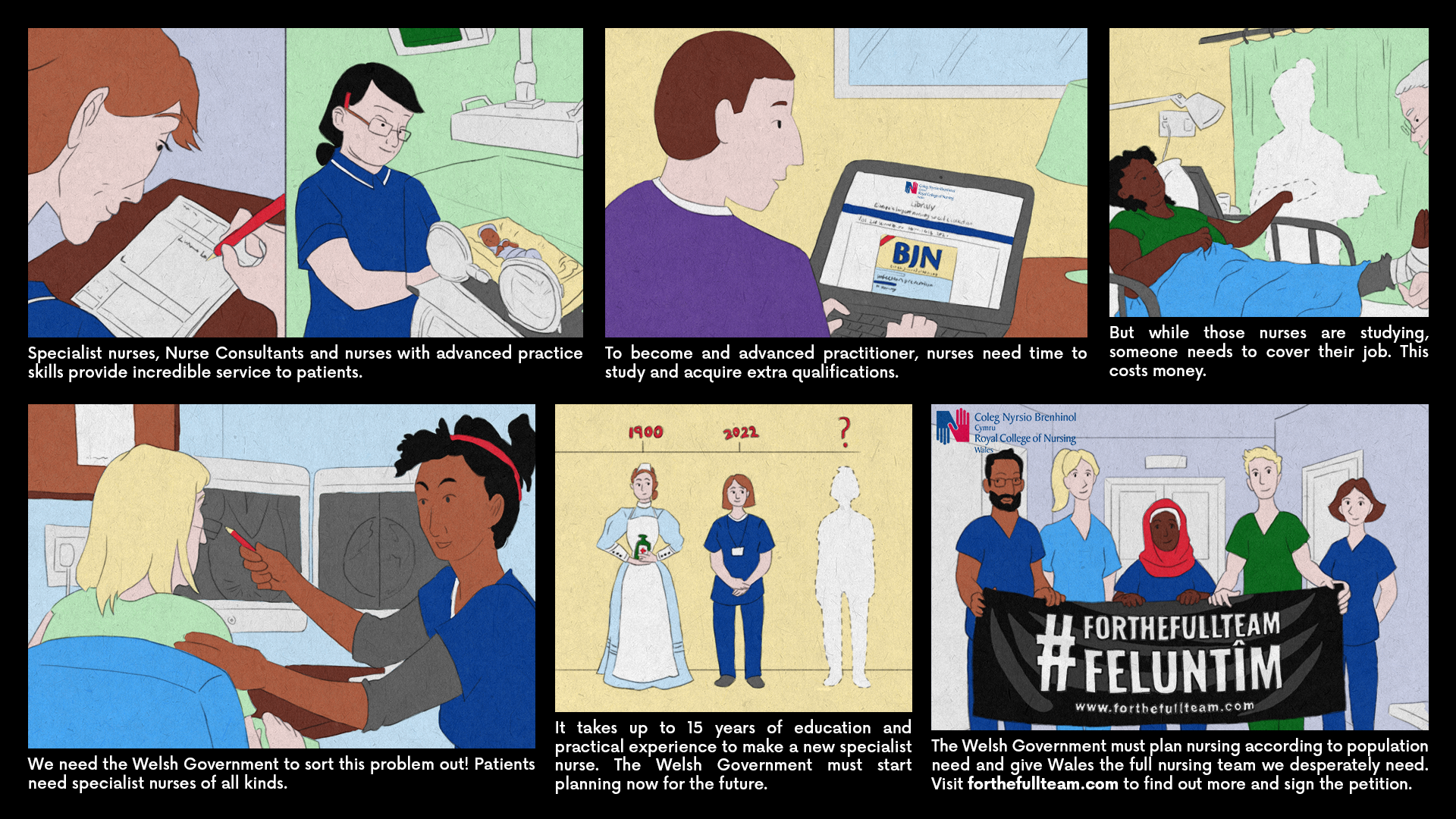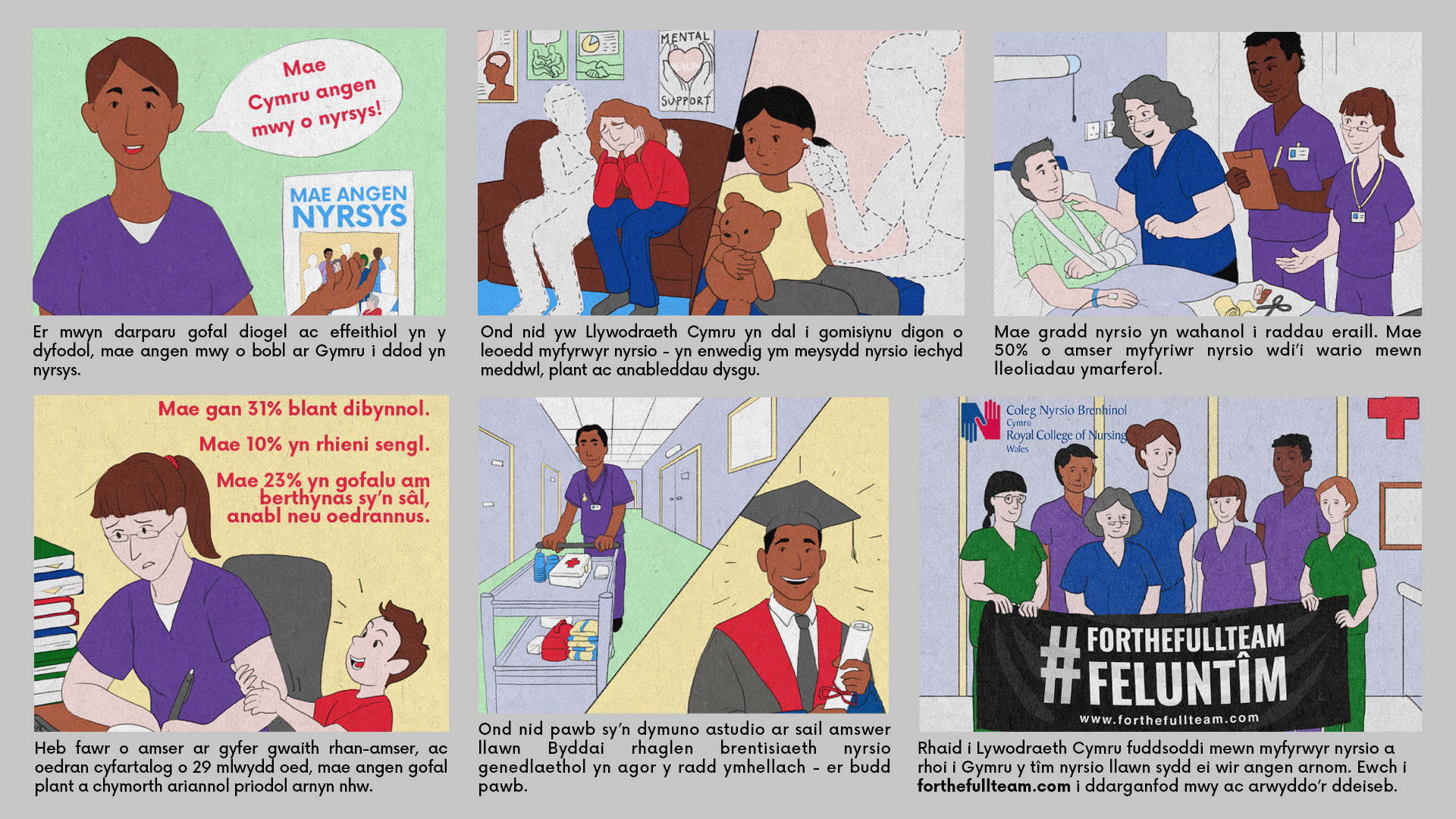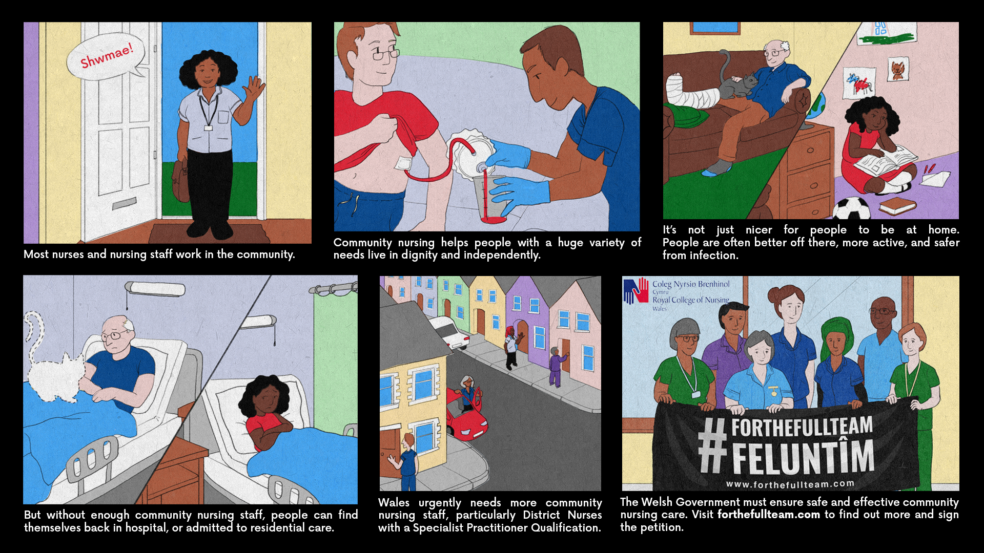Need a quick visual explainer of the value of nursing education or why the Welsh Government should invest in care home nursing? These comic strips have your back.