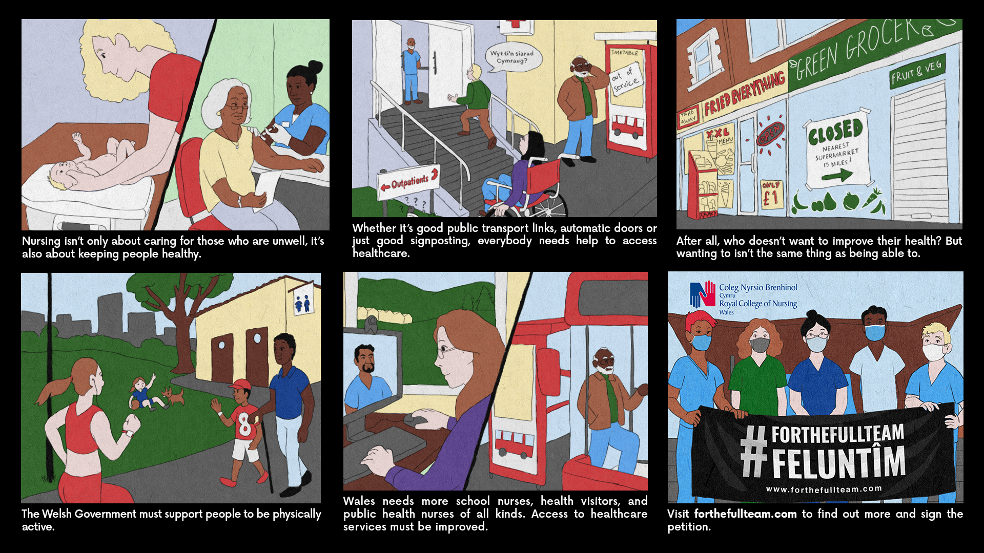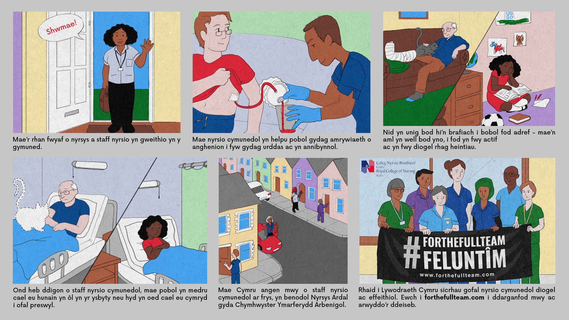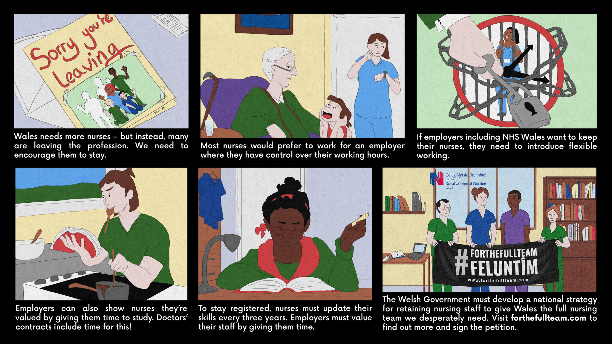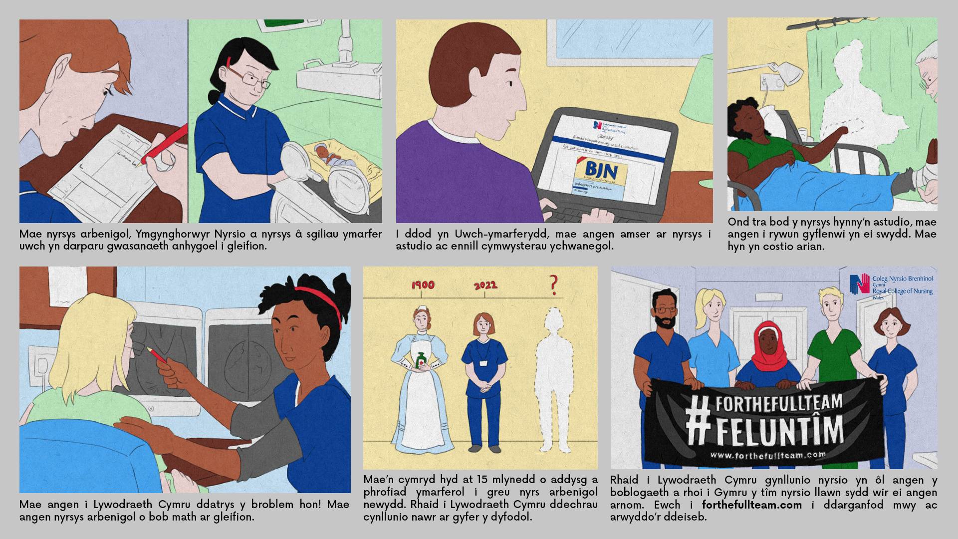 Need a quick visual explainer of the value of nursing education or why the Welsh Government should invest in care home nursing? These comic strips have your back.